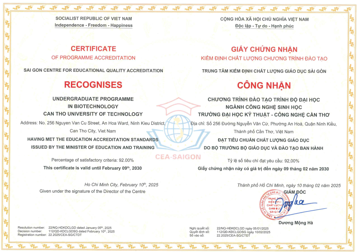 Chứng nhận kiểm định chất lượng CTĐT ngành Công nghệ sinh học Báo cáo tự đánh giá Bảo đảm chất lượng CNSH 10/11/202510/11/2025 Quản trị đăng tin9
